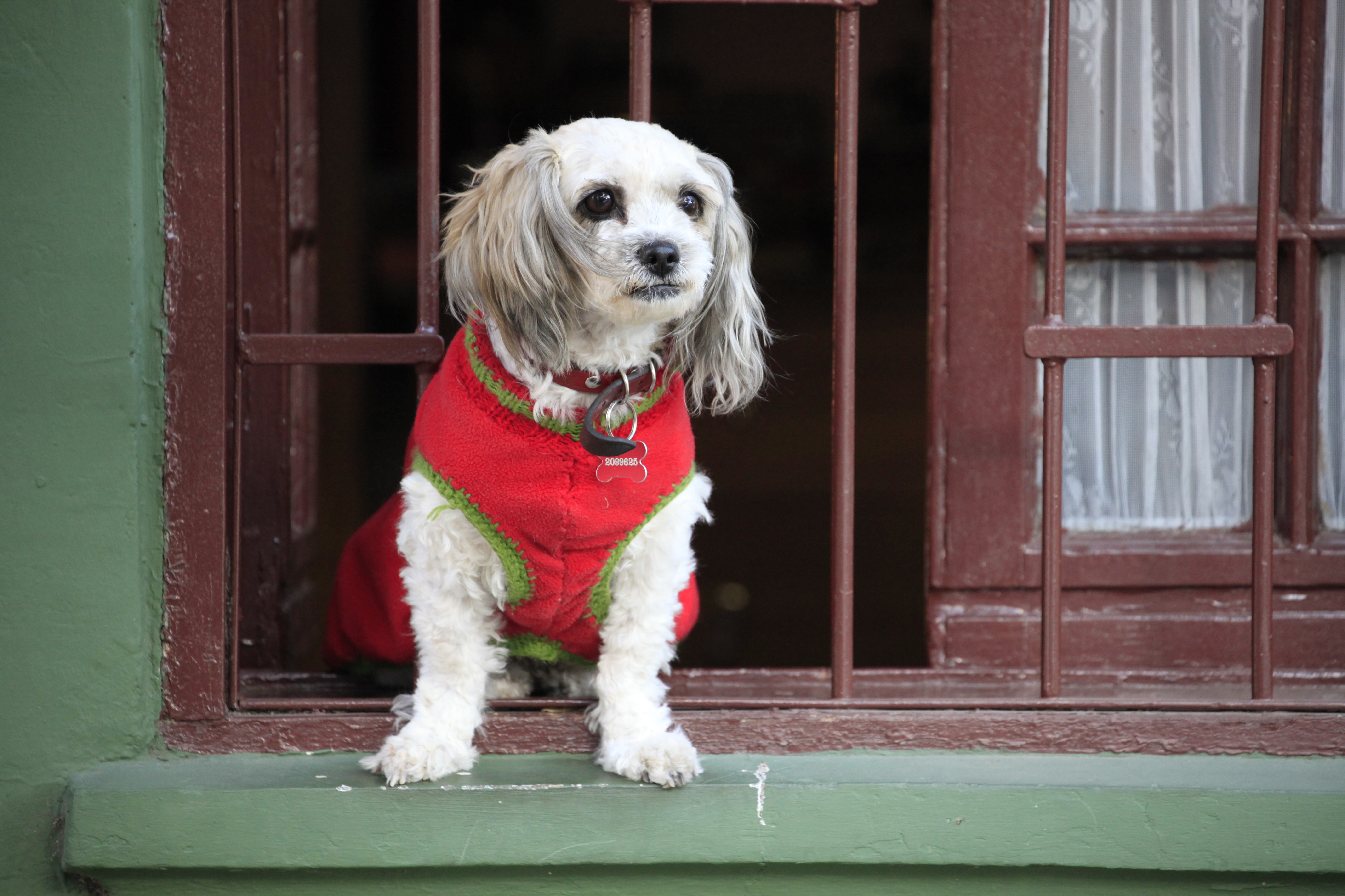 This cute dog lives in the Ñuñoa community of Santiago, Chile. I saw him on the way to work this morning and was able to stop and get off the shot out the car window before another car came up behind me.